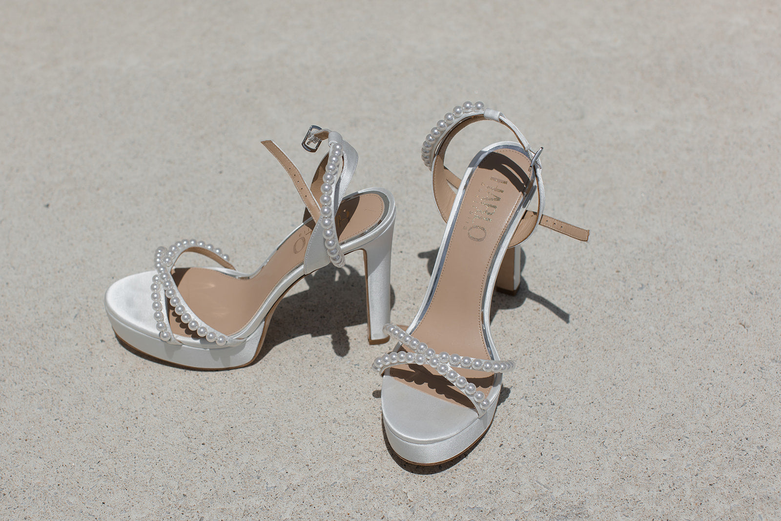 Nina Pearl - White Pearl & Crystal Embellished Sling Back Low Bridal Pump