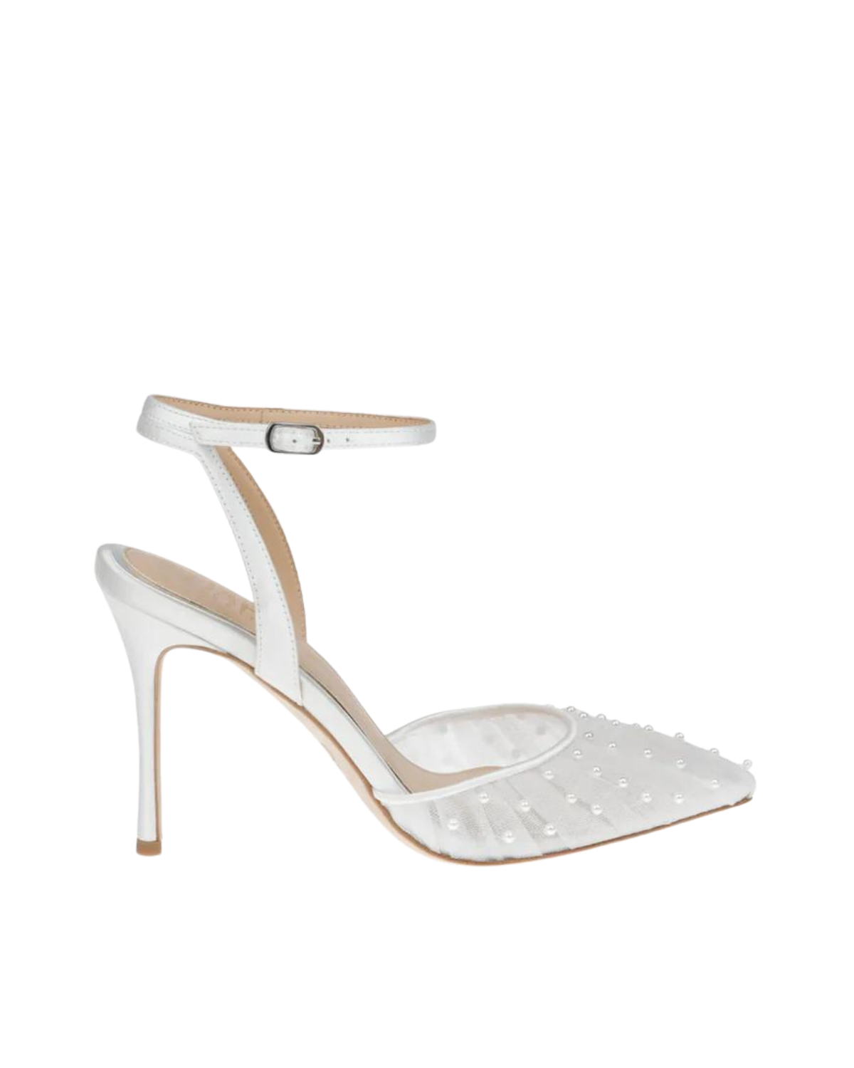 Elle - Tulle Block Heeled Point with Handsewn Pearls - Soft White