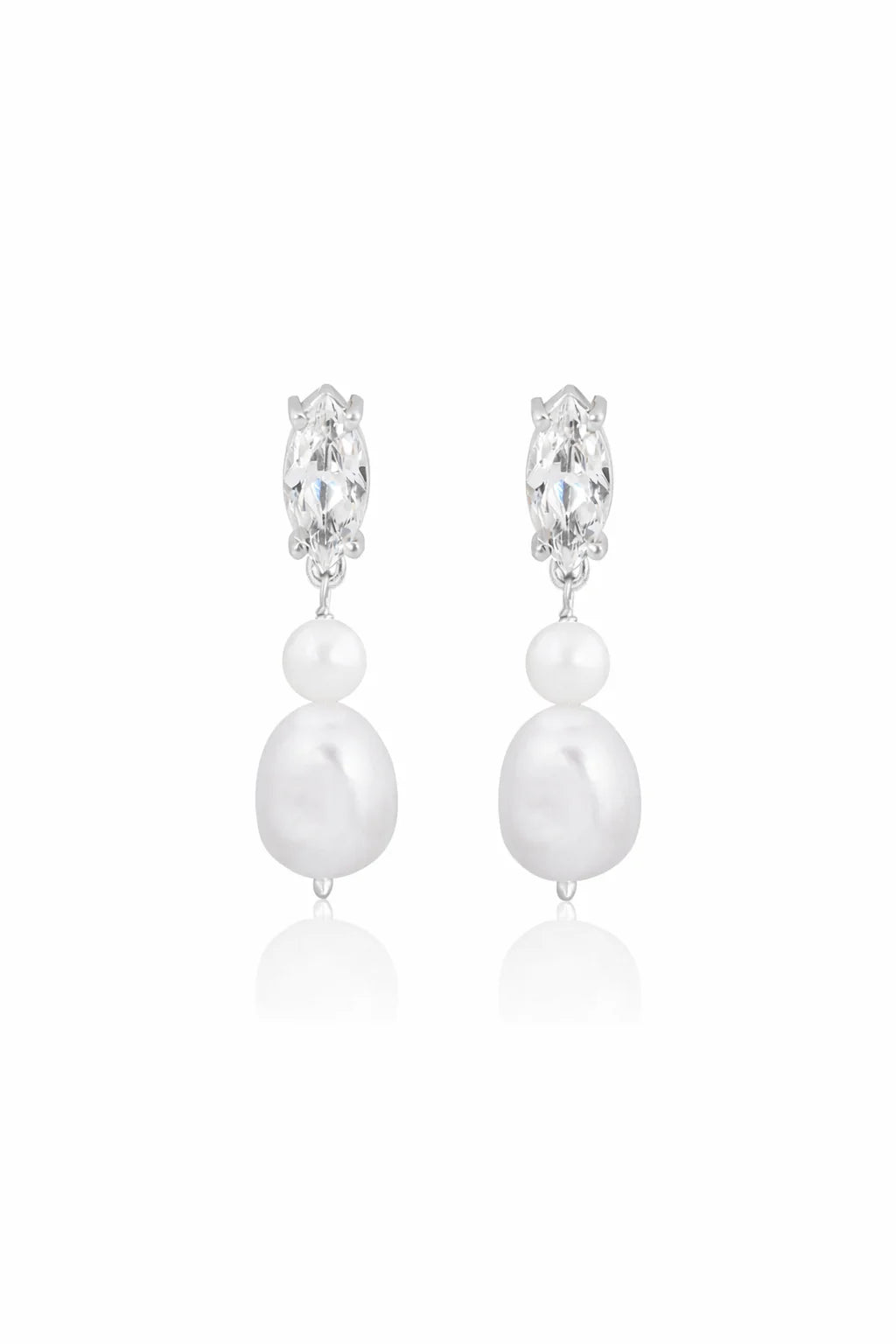 Poppy - Double Crystal and Pearl Drop Bridal Earrings Silver