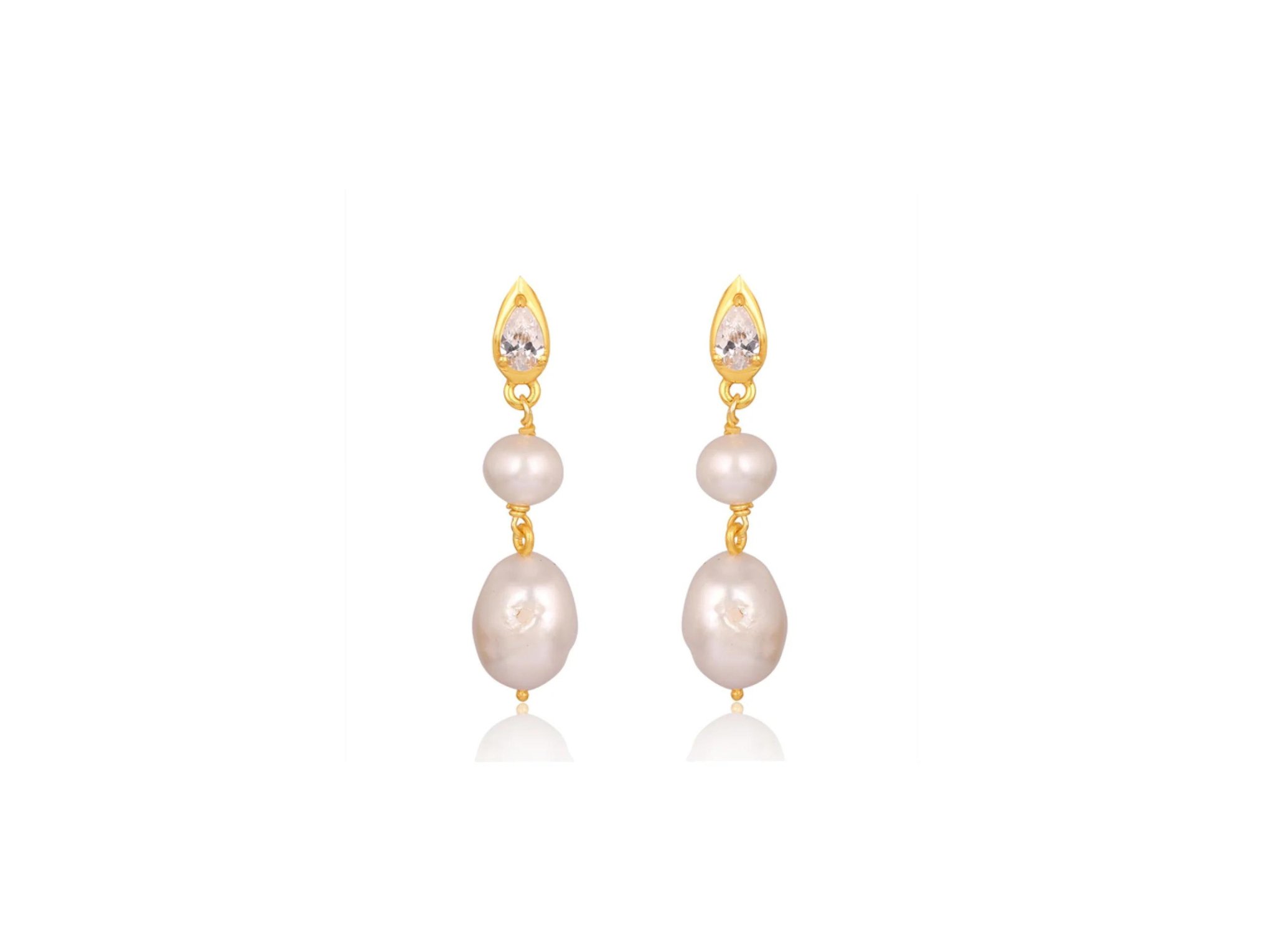 Lola Knight - Lulu - Pearl & Crystal Drop Earrings - 18CT Gold