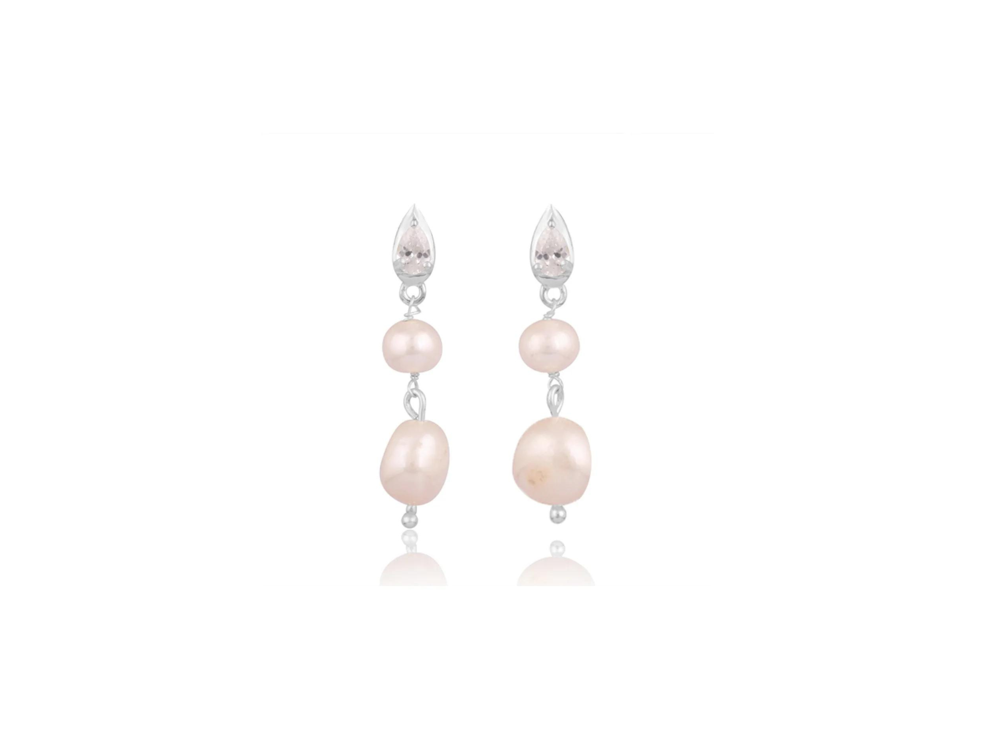 Lola Knight - Lulu - Pearl & Crystal Drop Earrings - Silver