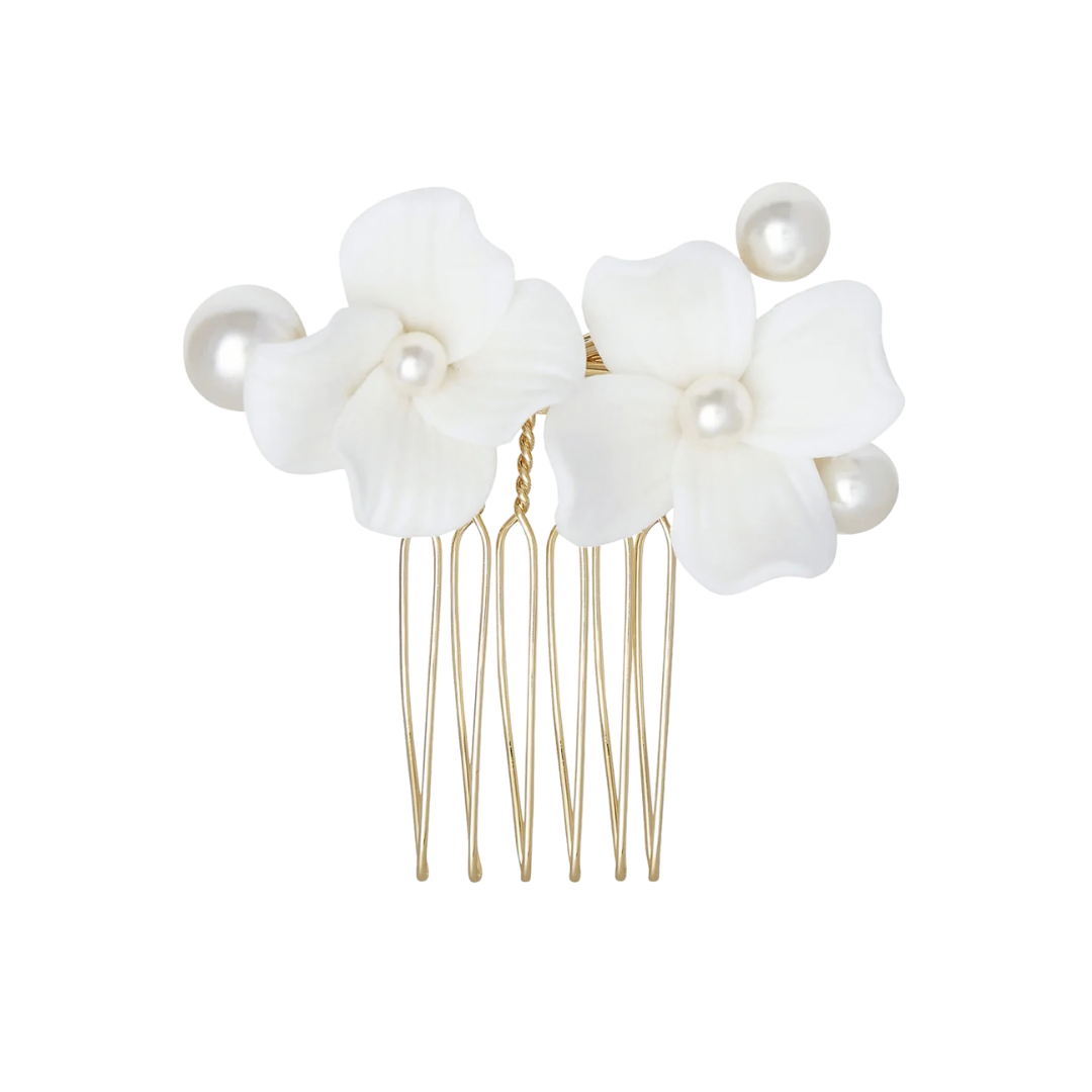Elizabeth Bower - Weiss Pearl Floral Hair Comb - Gold