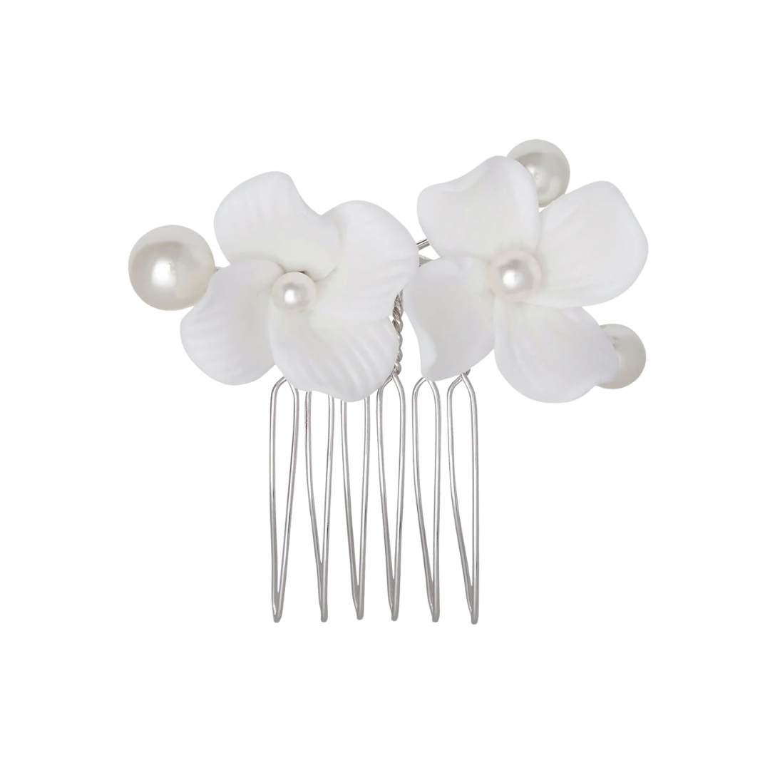 Elizabeth Bower - Weiss Pearl Floral Hair Comb - Rhodium Silver