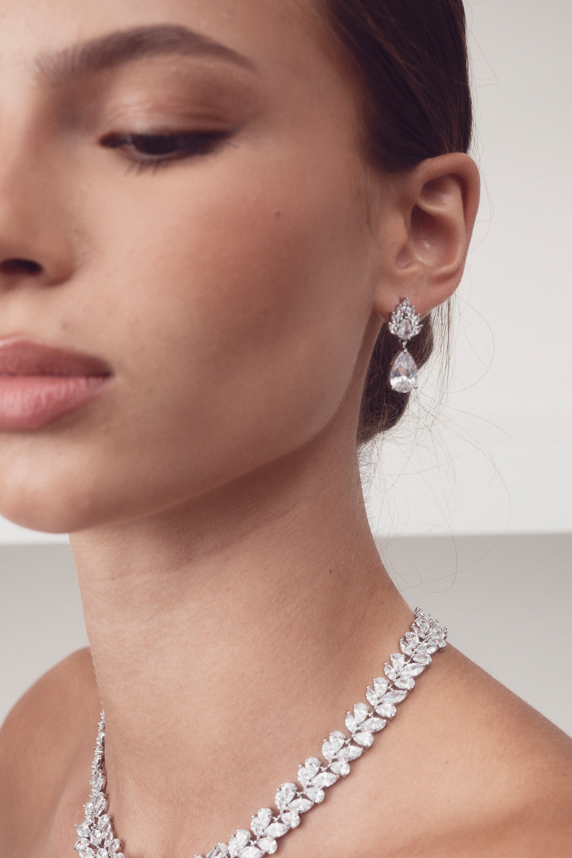 Jasmine - Classic Pear Cut Crystal Drop Bridal Earrings