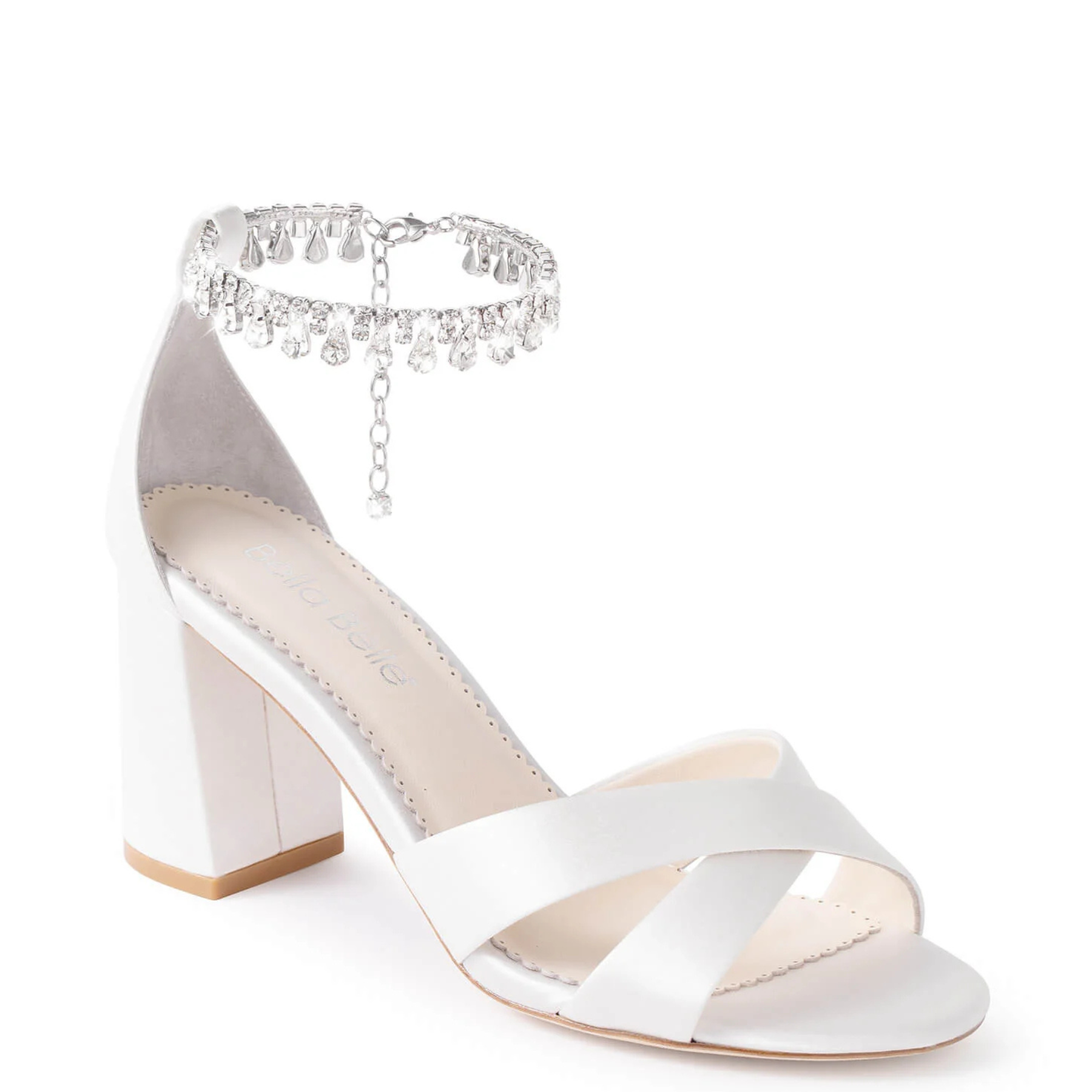 Wila - Crystal Embellished Peep Toe Block Heel - Soft White