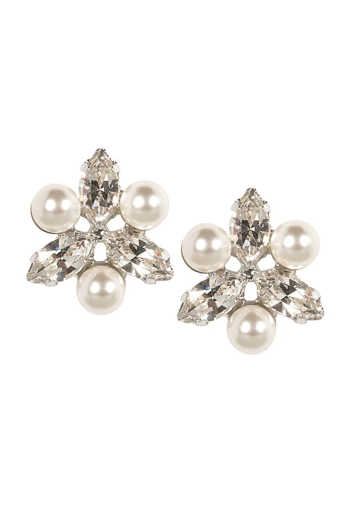 Elizabeth Bower - Juliette Pearl & Crystal Stud - Rhodium Silver