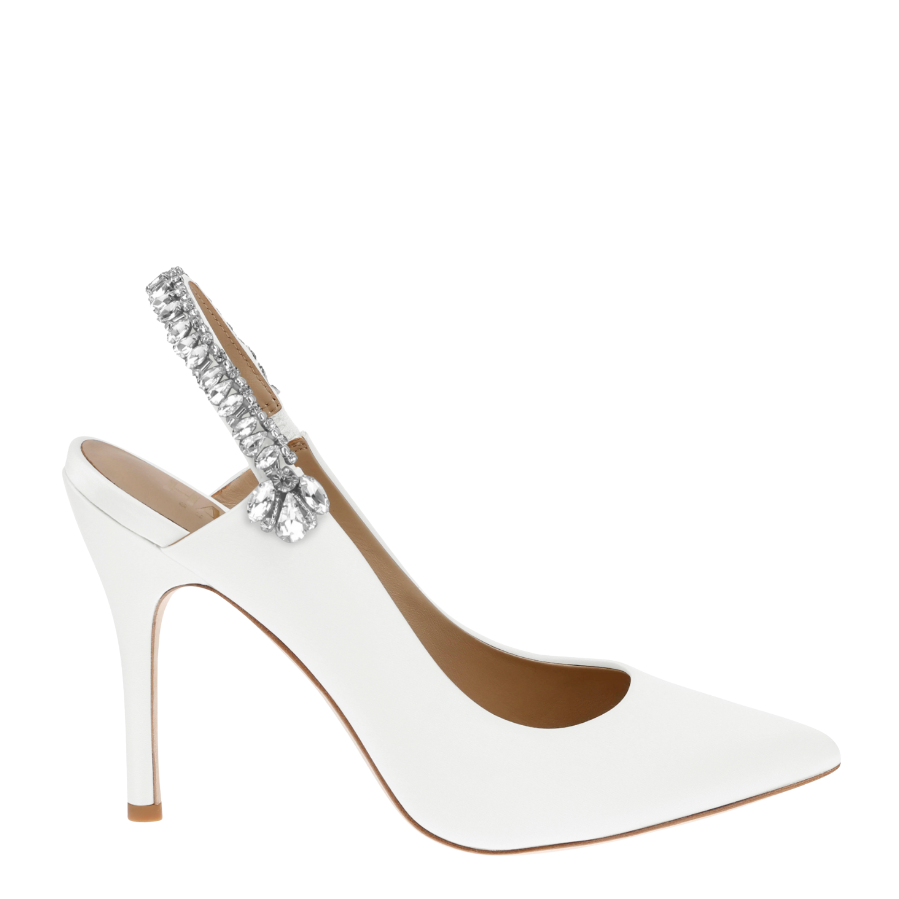 Bonnie - White Crystal Embellished Sling Back Evening Pump