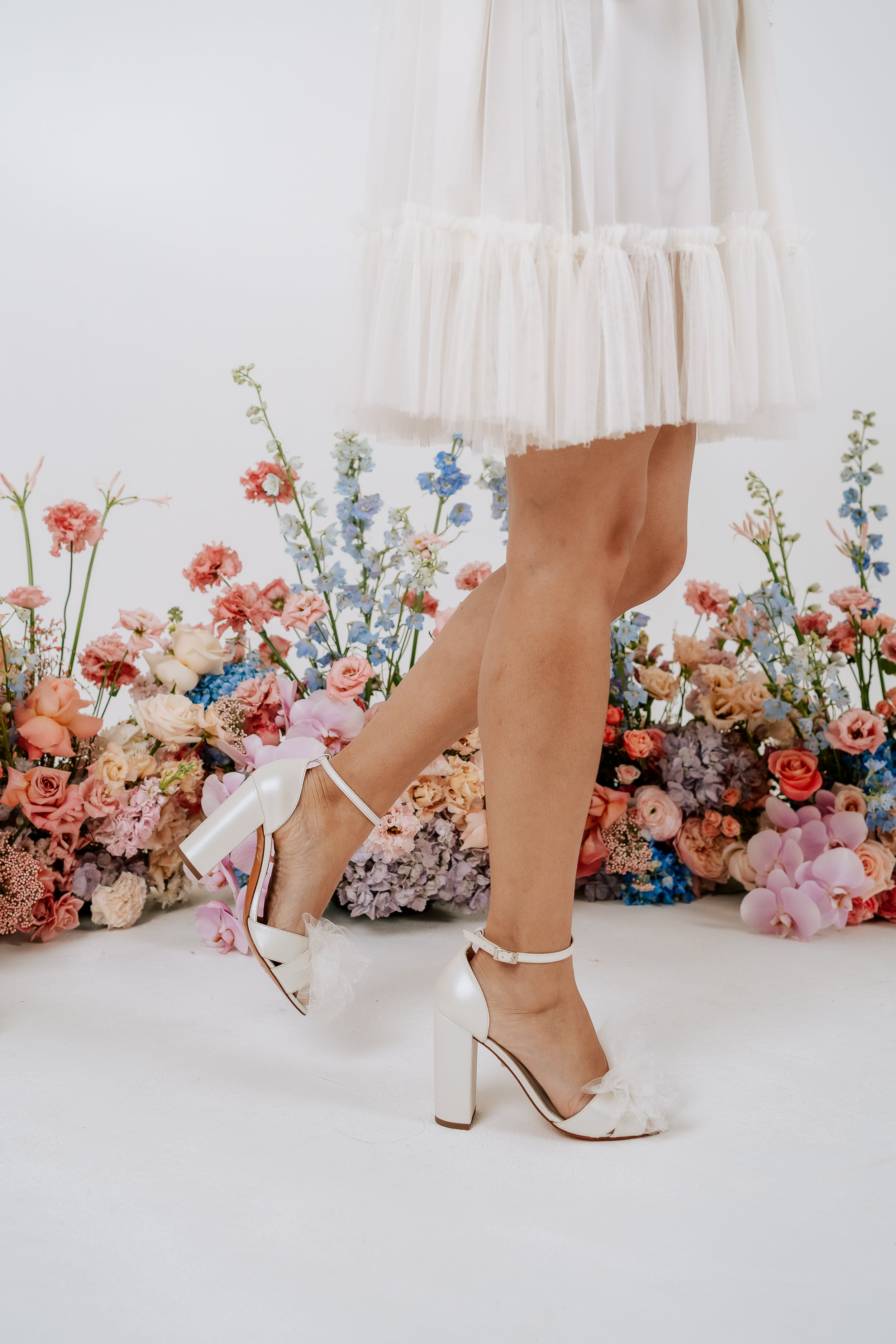 Indi - Ivory Tulle Bow Bridal Block Heel - Size 8 Only