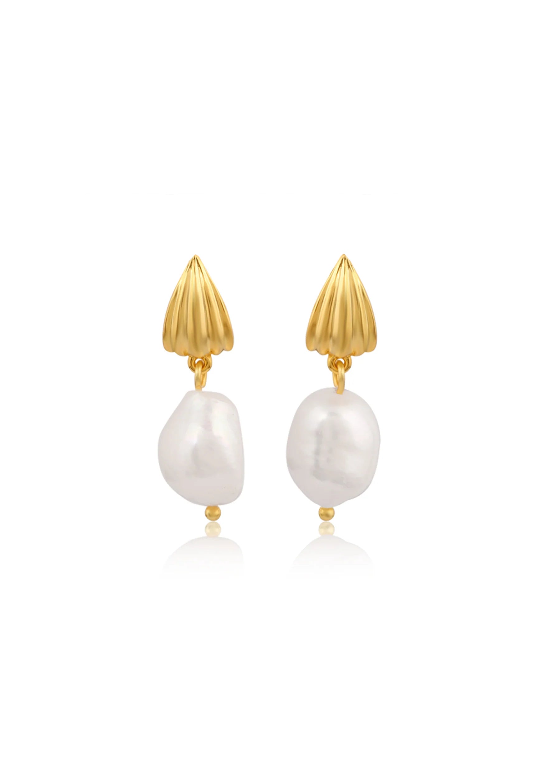 Lola Knight - Marinda - Freshwater Pearl Drop Earrings - 18ct Gold