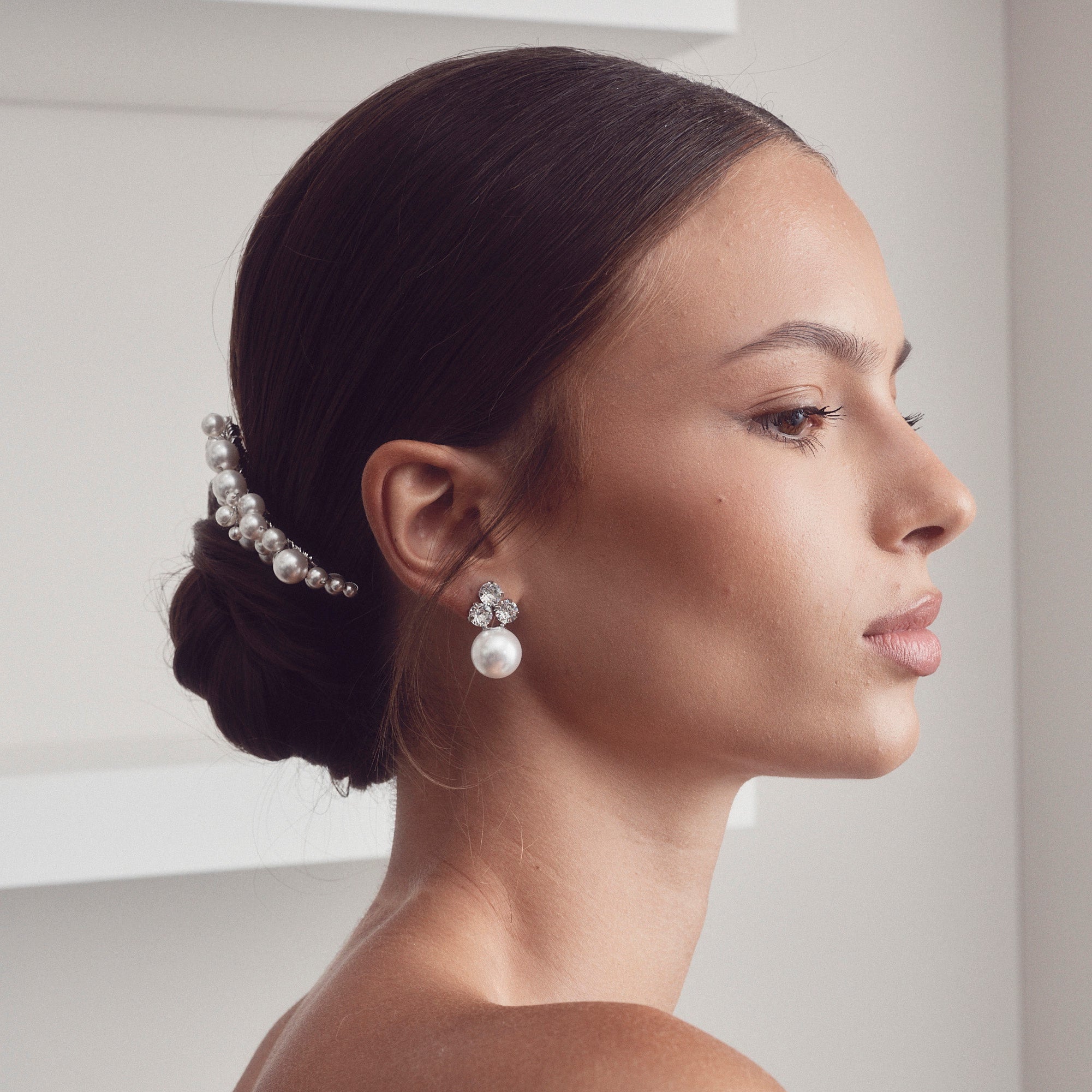 Elizabeth Bower - Weiss Pearl Floral Hair Comb - Rhodium Silver