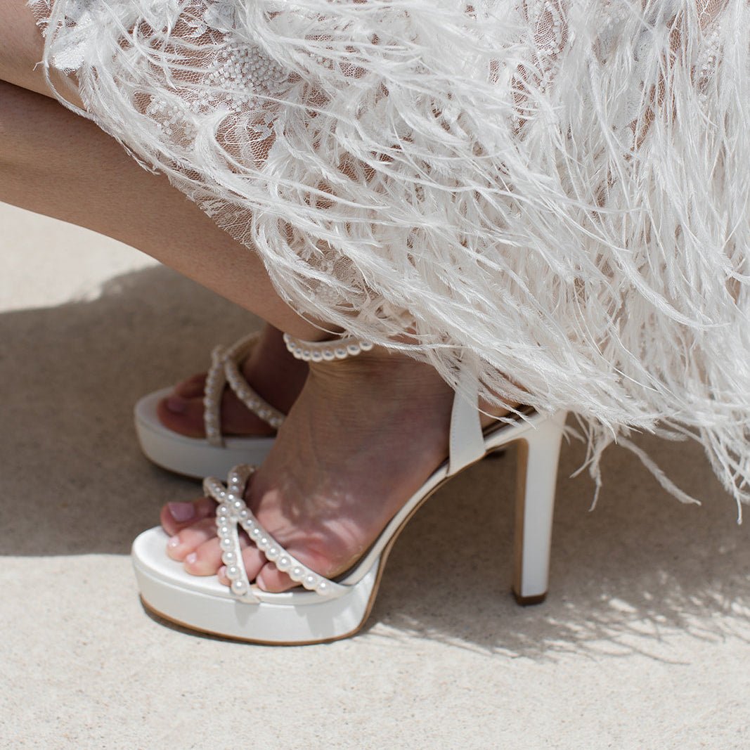 Nina Pearl - White Pearl & Crystal Embellished Sling Back Low Bridal Pump